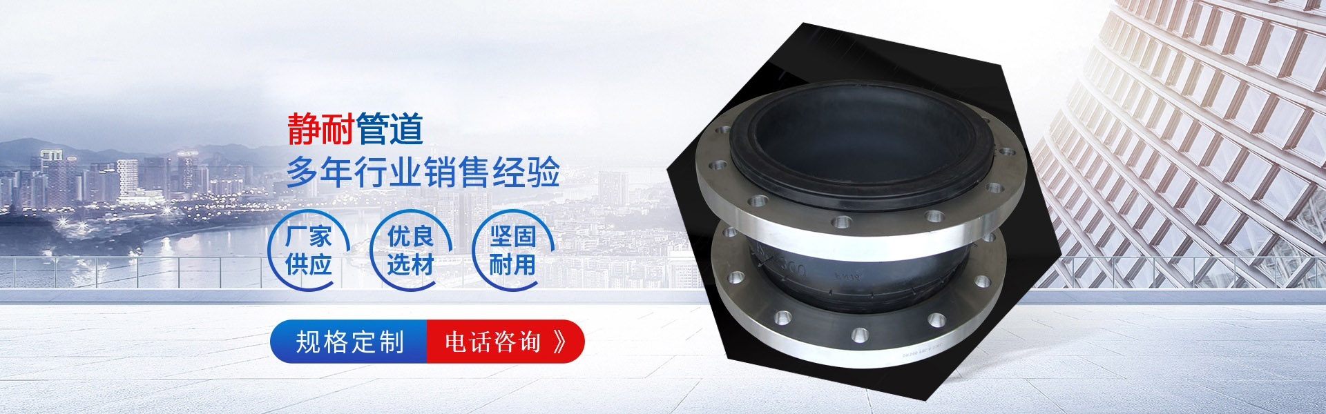 南京静耐管道设备有限公司是一家专业生产、销出可曲挠橡胶接头、金属软管、补偿器、伸缩接头、减震器以及各种管道设备的企业,我公司只有一支经验丰富,精于和科研管理的生产队伍,拥有先进的生产设备和完善的检测仪器。