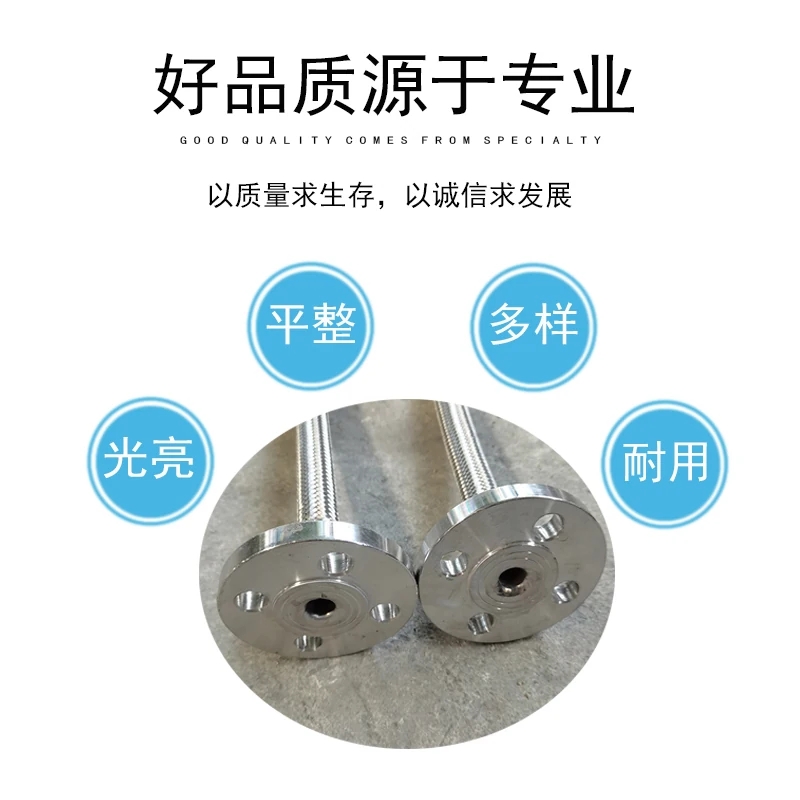 不锈钢金属软管不锈钢波纹管(不锈钢金属软管)是现代工业管路中一种高品质的柔性管道。产品主要由波纹管、网套和接头或法兰组成。产品内管是具有螺旋型或环型的薄壁不锈钢波纹状管,波纹管外层的网套,是由不锈钢丝按一定的参数编织而成。软管两端的接头或法兰是与用户管道的接头或法兰相配的。不锈钢波纹管具有耐腐蚀、耐高温、耐低温、重量轻、体积小、柔软性好等特点。应用于航空、石油、化工、冶金、电力、造纸、医药、食品、木材、烟草、交通等行业。可按客户图纸,样品制造。