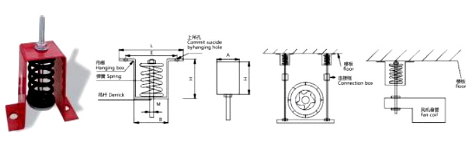 凤机、管道、动力设备的吊装隔损降横,也可用于精密仪表的吊液等等。荷载范围: 10-1000Kg